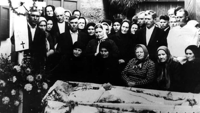 Los fieles velan los restos de la Sierva de Dios Gertrude Detzel a su muerte en 1971 en Karagandádiócesis karagandá